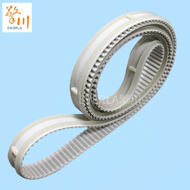 包裝餅干、面包等固態(tài)食品時(shí),帶體平整度直接影響物料排列。PU同步帶采用白色PU原料,表面光滑無凸起,能讓食品均勻分布在帶體表面,減少傳輸中因帶體不平整導(dǎo)致的偏移,確保食品順利進(jìn)入包裝工位。而面對(duì)醬料包、零食袋等軟質(zhì)包裝,PU同步帶的摩擦系數(shù)經(jīng)過優(yōu)化,既不會(huì)因摩擦力過小導(dǎo)致包裝打滑錯(cuò)位,也不會(huì)因摩擦力過大造成包裝破損,助力包裝流程有序推進(jìn)。